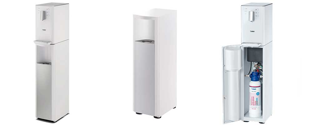 Cele 3 variante de dozatoare BWT AQA drink Pro 20, fiecare adaptată preferințelor diferite privind tipul de apă dorit: